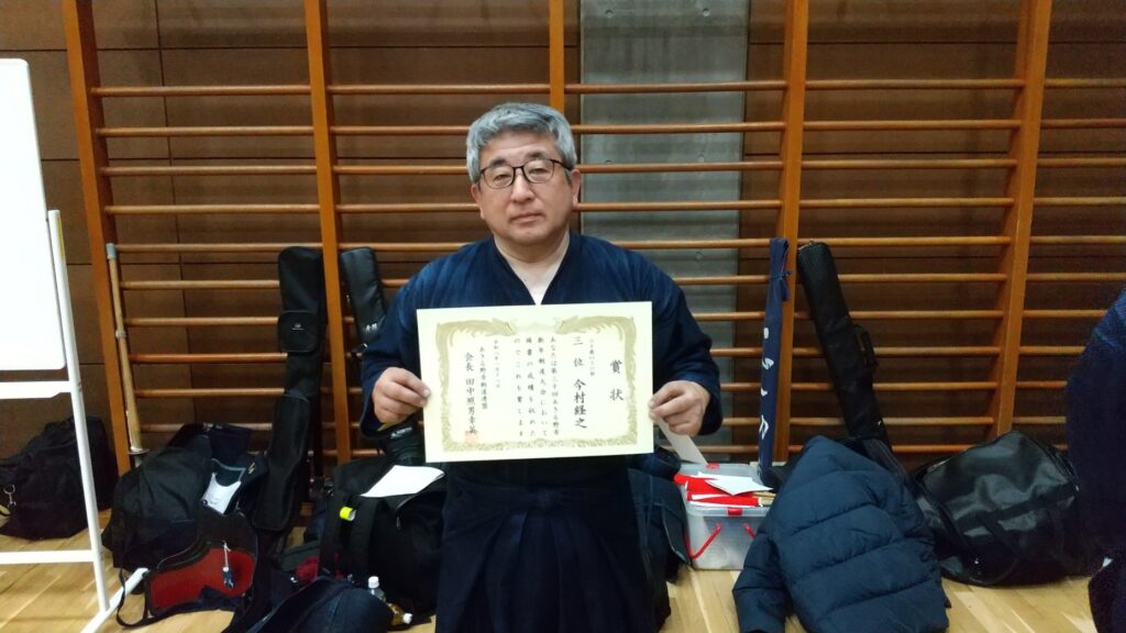西秋留剣友会からも多数の選手、役員が参加し、シニアの部で今村経之先生が三位入賞を果たしました。